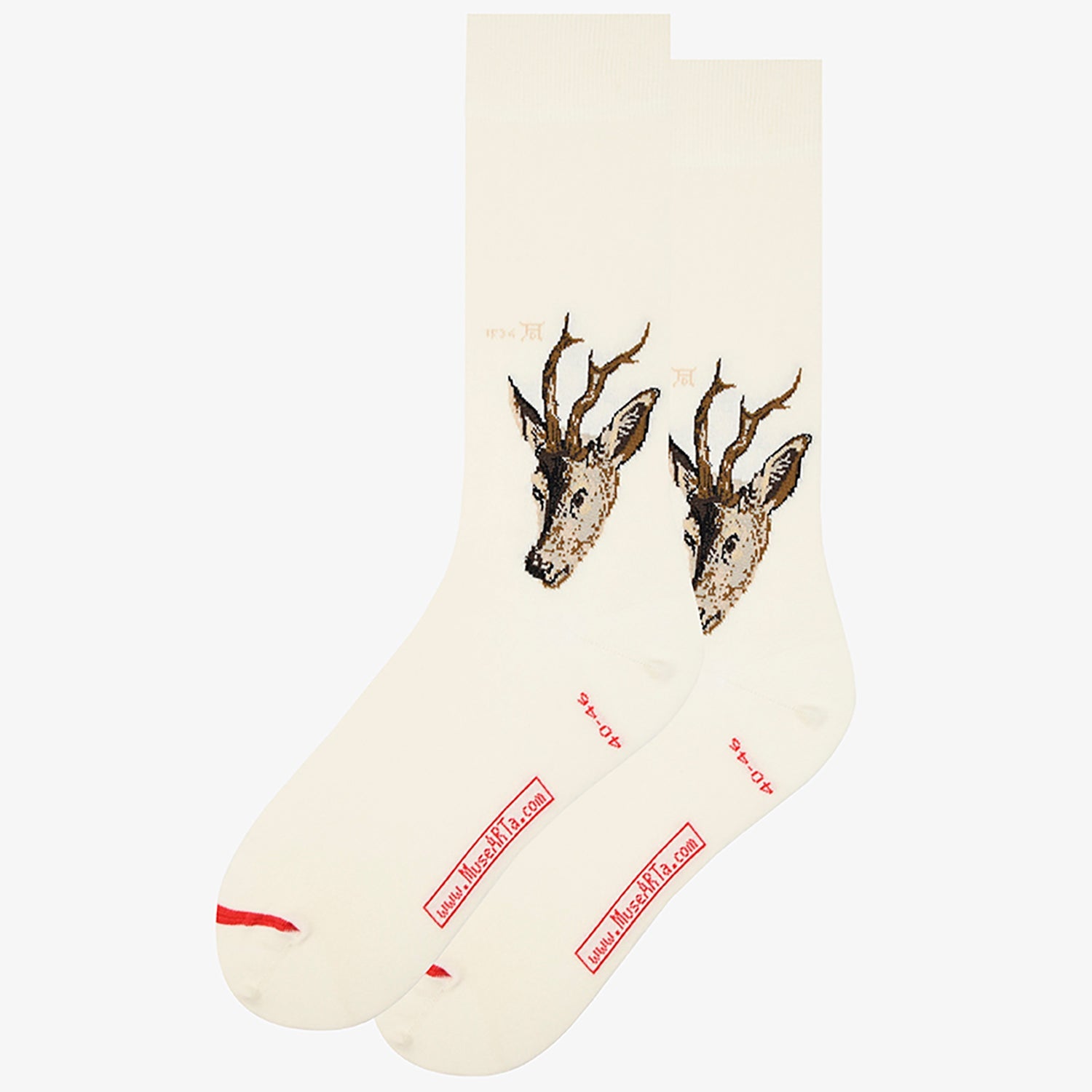 Tragen Sie ein Meisterwerk an Ihren Füßen. Diese exklusiven Kunstsocken präsentieren Albrecht Dürers ikonische Zeichnung "Kopf eines Hirsches" – ein Renaissance-Klassiker, der die meisterhafte Beobachtungsgabe des großen Künstlers zeigt. Das fein ausgearbeitete Motiv verbindet kunsthistorische Eleganz mit alltäglichem Komfort. Perfekt für Kunstliebhaber, die ihre Leidenschaft stilvoll zur Schau tragen möchten. Ein subtiles Statement für kultivierte Geschmäcker.