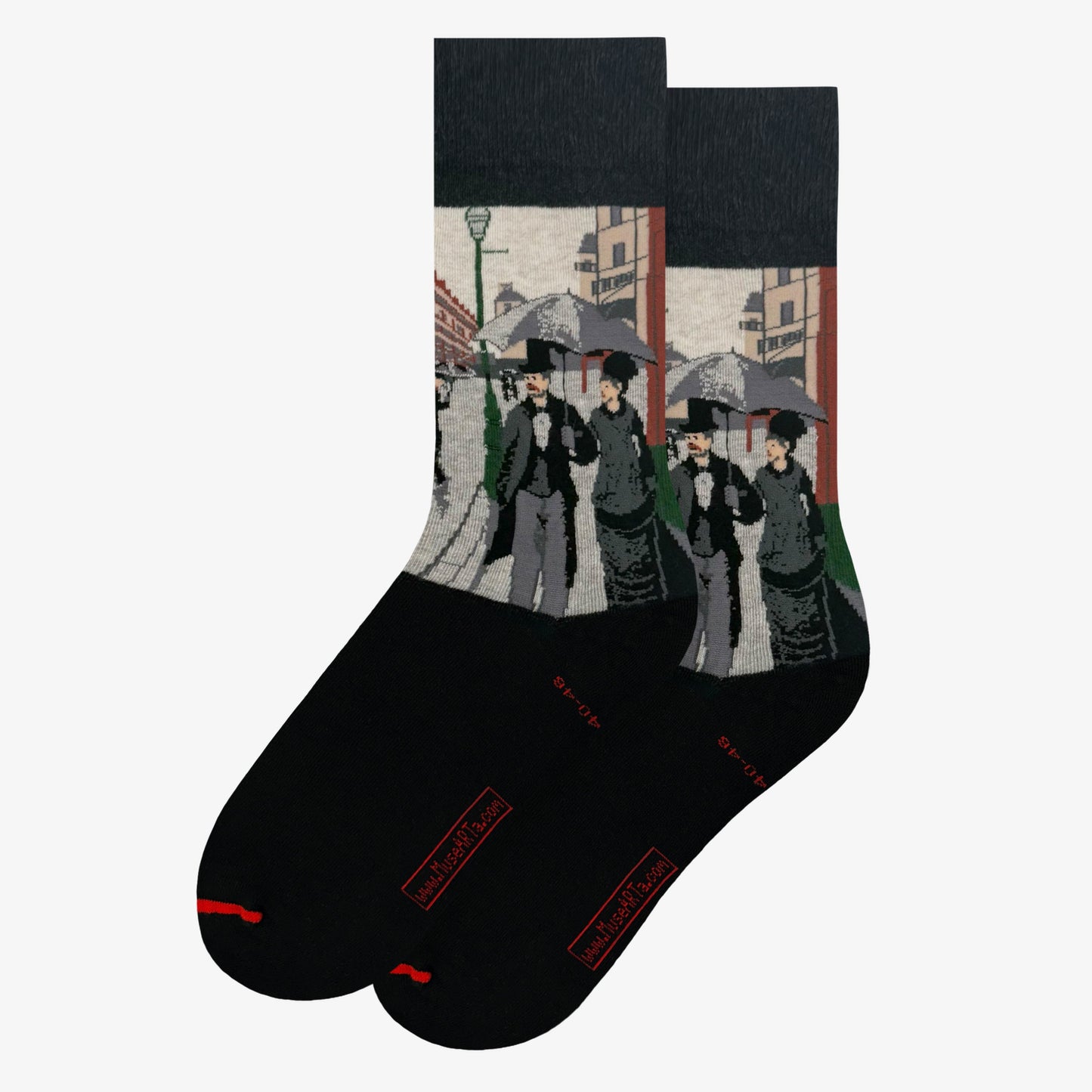 Profitez de l'art à chaque tour avec notre exclusivité Gustave Caillebotte - Paris Street; Chaussettes d'art du jour de la pluie. Le mélange parfait de luxe et d'art pour gâcher vos pieds et en même temps souligner votre style. Soyez inspiré par cette maîtrise de la peinture et donnez à chaque étape une touche d'élégance.