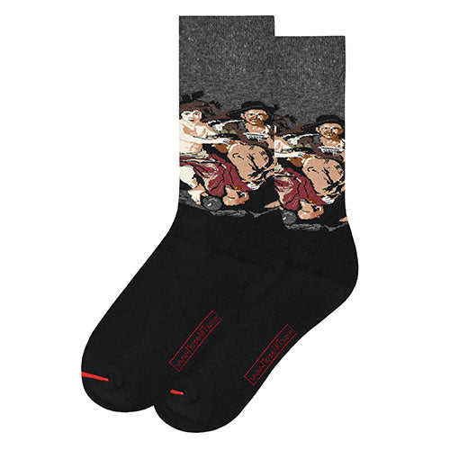 Timeless sock design featuring the artwork "The Feast of Bacchus" by Diego Velázquez.